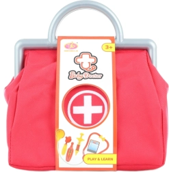 Lægesættet indeholder et plaststetoskop, otoskop, sprøjte, navneskilt og et termometer. Taskens mål ca. 20 x 22,5 x 8,5 cm. Alder 3+