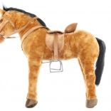 Denne plysdyrshest efterligner en ægte hest, inklusive en detaljeret saddel og trense, hvilket gør den perfekt til fantasifuld leg. Dens mål er cirka 72 x 64 x 20 cm, hvilket giver rigelig plads til forskellige legeaktiviteter.
