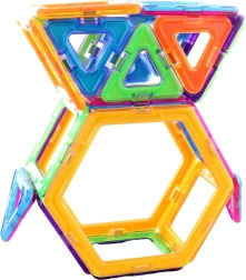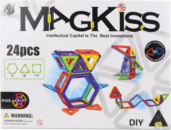 Prøv det magnetiske byggesæt MagKiss, som ikke kun tilbyder sjov, men også støtter dine børns udvikling og kreativitet. Sættet indeholder 24 dele i form af trekanter, firkanter og sekskanter. Takket være sin enkelhed og alsidighed er byggesættet velegnet til at samle enhver fantasifuld struktur.