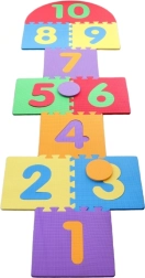 Skum-puslespil som hinkerude. Indeholder 10 brikker. Pakkemål ca. 56 x 30 x 6,5 cm. Alder 3+