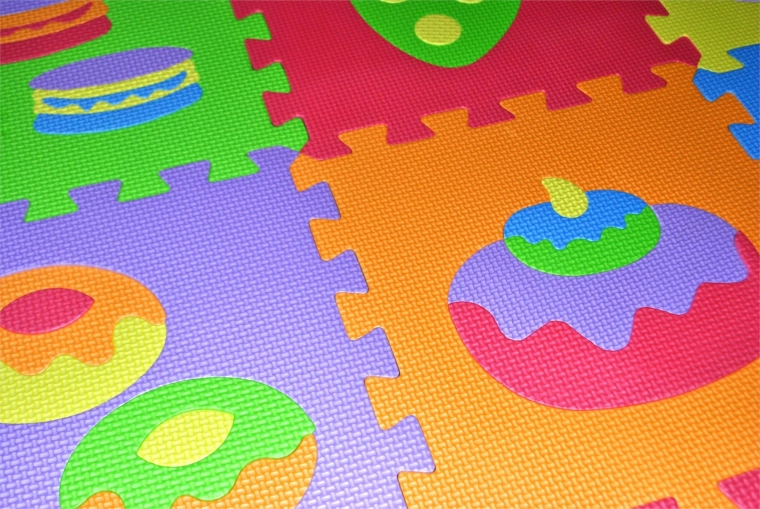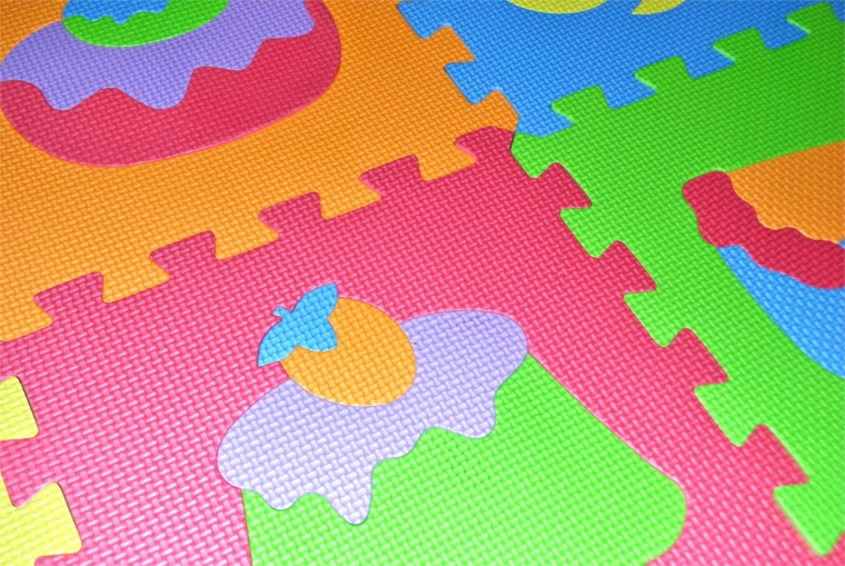 Dette skumpuslespil med madmotiver er ideelt som legetæppe til børneværelset. Det bløde materiale gør det sikkert, behageligt at røre ved og let at vedligeholde. Den riflede overflade giver bedre stabilitet under leg og minimerer glid.