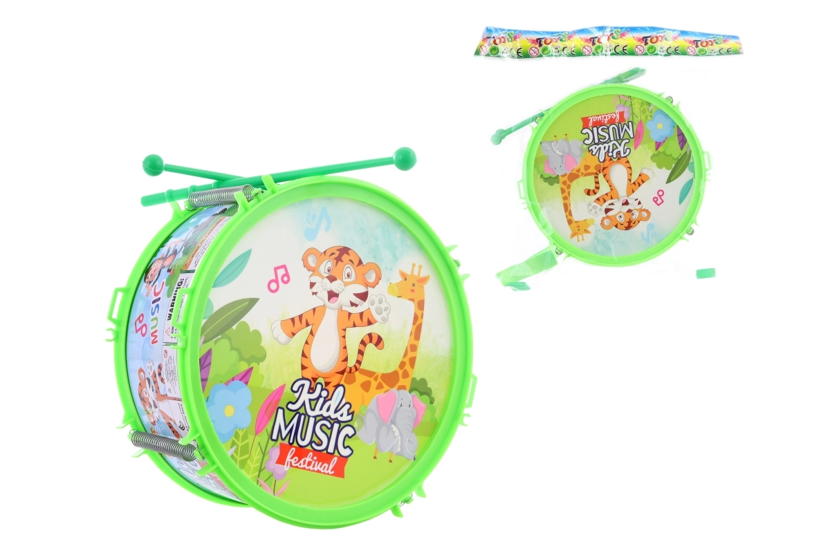 Støt dit barns kreativitet og rytmesans med en sød tromme med dyremotiver. Takket være de to trommestikker og den lette konstruktion er den ideel til den første introduktion til musik og udvikling af finmotorik. Det muntre design motiverer børn til at udforske lyde og skabe deres egne melodier.