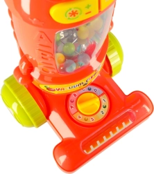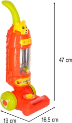 Denne hindbærrøde børne-støvsugerstick er det ideelle legetøj til små hjælpere i hjemmet. Takket være lys- og lydeffekter virker den som et ægte apparat og giver børn følelsen af at deltage i daglige gøremål. Indeni er der farvede kugler, der løfter og falder under drift, hvilket gør legen endnu mere attraktiv.