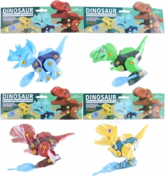 Pakken indeholder en sikker skruetrækker i plast, som gør monteringen enkel og sjov. Forskellige dinosaurtyper (afhængigt af variant) måler ca. 15 × 19 × 7 cm og passer perfekt i børnehænder.