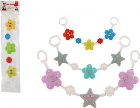 Dette farverige kædelegetøj med sol og stjerner fastgøres nemt til barnevogn, autostol eller tremmeseng. Det understøtter visuel perception, finmotorik og underholder babyen både på farten og derhjemme. Takket være det holdbare plast og den sikre udførelse er det ideelt til daglig brug.