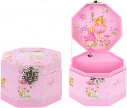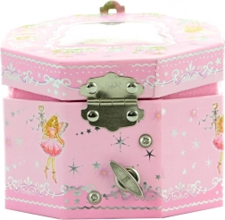 Denne yndefulde musik-smykkeskrin i rosa med eventyrlige motiver er det perfekte sted at opbevare ringe, øreringe og andre småting. Når nøglen drejes, snurrer ballerinaen elegant foran spejlet, mens skrinet spiller en blid melodi.