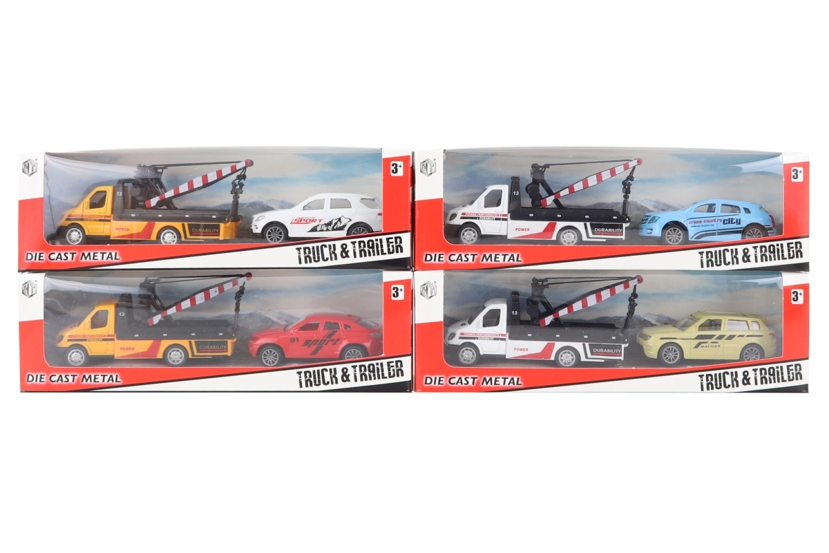 Denne detaljerede model af en slæbebil med personbil giver børn realistiske legescenarier – fra at læsse en havareret bil til sikker bugsering. Metaldele sikrer højere holdbarhed og længere levetid for legetøjet.