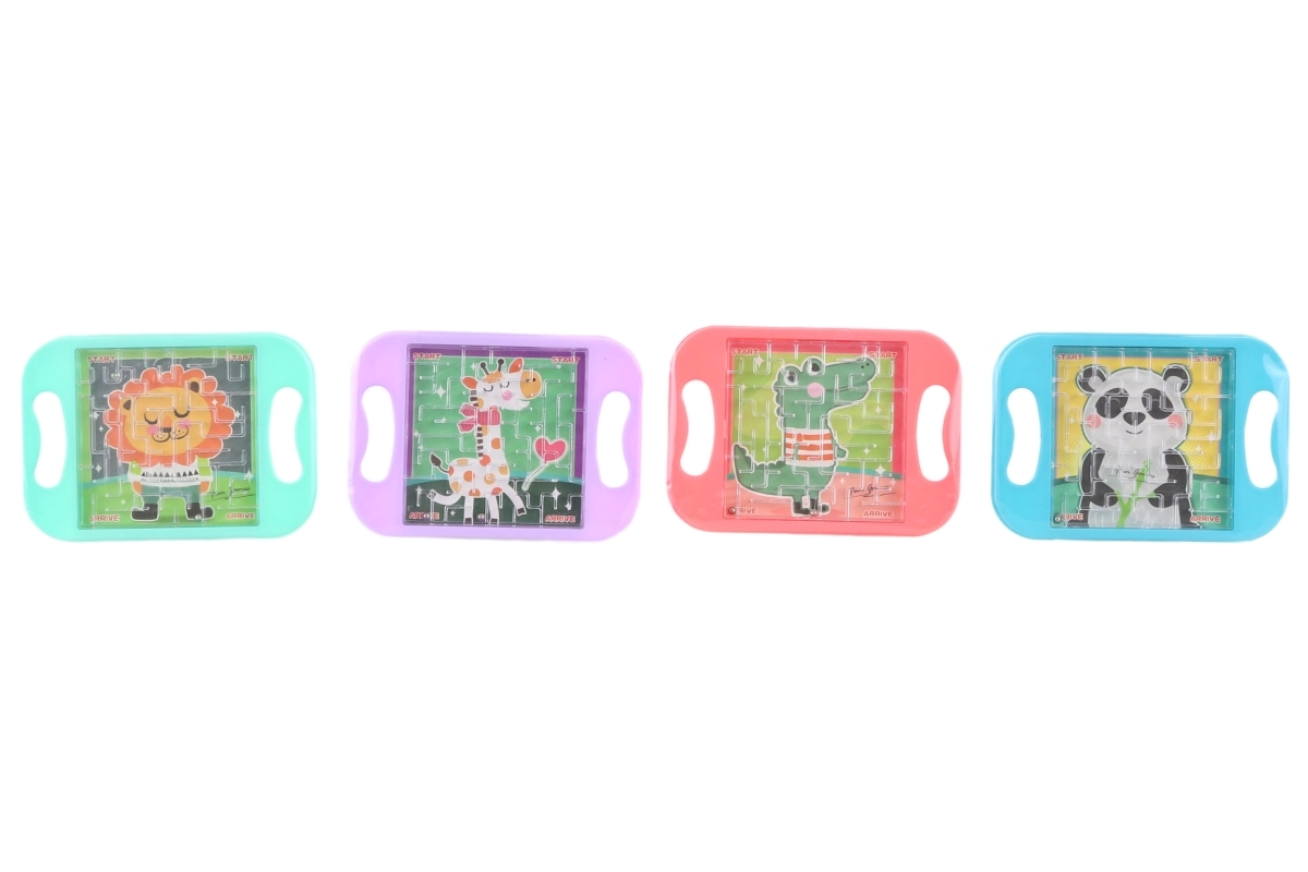 Det plastiske labyrint med dyremotiv er et fremragende valg til træning af tålmodighed og øje-hånd-koordination. To metal-kugler inde i labyrinten tester børnenes dygtighed, når de præcist skal føres ad de rigtige veje. Takket være de kompakte mål passer labyrinten i lommen eller rygsækken og underholder børn når som helst og hvor som helst.