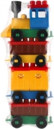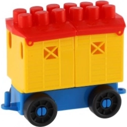 Lokomotiv og 3 vogne, der nemt kan kobles på, til variable opbygninger og sjov leg.