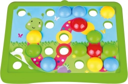 Sjov mosaik med naturmotiver til de mindste børn, som styrker finmotorik, farvelære og koordinationsevner. Takket være de store pløkke og de lette, tydelige huller tager børn fra 2 år den hurtigt til sig. Indeholder 7 farvede skabeloner og 36 pløkke af holdbar plast.