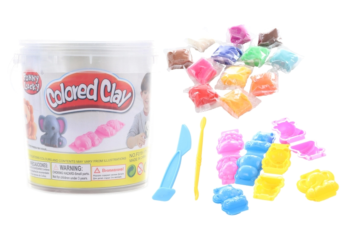 Malesættet indeholder 12 pakker modellervoks i forskellige farver, 6 forme og en plastkniv. Alt er opbevaret i en praktisk plastspand. Pakkens mål ca. 13 x 13 x 12,5 cm. Alder 3+