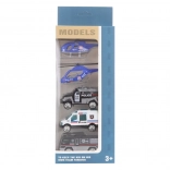 Oplev actionfyldt leg med en sæt med politibiler i metal, der indeholder 2 helikoptere og 3 biler. Ideel til små fans af redningstjenester fra 3 år. Det kompakte emballagemål på 10 × 27 × 3,5 cm er perfekt til rejser og som gave.