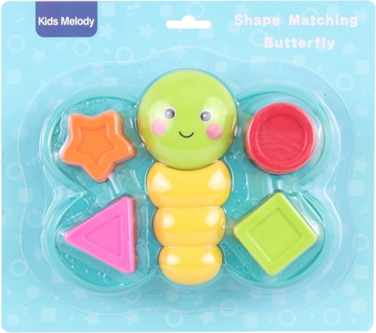 Plast-puttekasse i form af en sommerfugl med 4 dele. Udvikler motorik og læring af former. Legetøjsmål 19×15×8,5 cm, alder 18 m+. Ideel gave til de mindste.