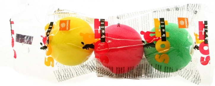 Praktisk sæt med tre lette skumbolde til softtennis og andre lege. Takket være den bløde skum er de sikre, støjsvage og velegnede til leg indendørs. Ideelle til børn fra 3 år, pakket i plastpose, fremstillet i Italien.