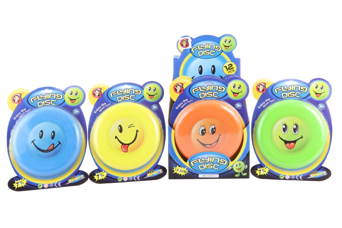 Nyd masser af sjov med en farverig flyvende tallerken med et muntert, smilende ansigt. Takket være den kompakte diameter på ca. 19 cm ligger den godt i hånden, også for mindre børn, og er let at kaste og gribe. Perfekt til familiestunder i frisk luft og understøtter sund bevægelse.