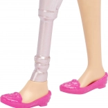 Barbie-dukken (29 cm) er klædt i en elegant lyserød kjole med en ternet jakke og lyserøde ballerinaer. Hendes unikke karakter fremhæves af et protese ben, hvilket understreger vigtigheden af inklusivitet. Pakken inkluderer også en 'tablet' og et designkort, der inspirerer til berigende lege.