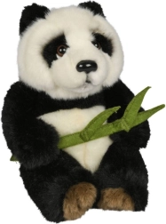 Det realistiske sort-hvide farvemønster og detaljen med bambusbladet giver legetøjet et særligt udtryk, der fanger blikket med det samme.