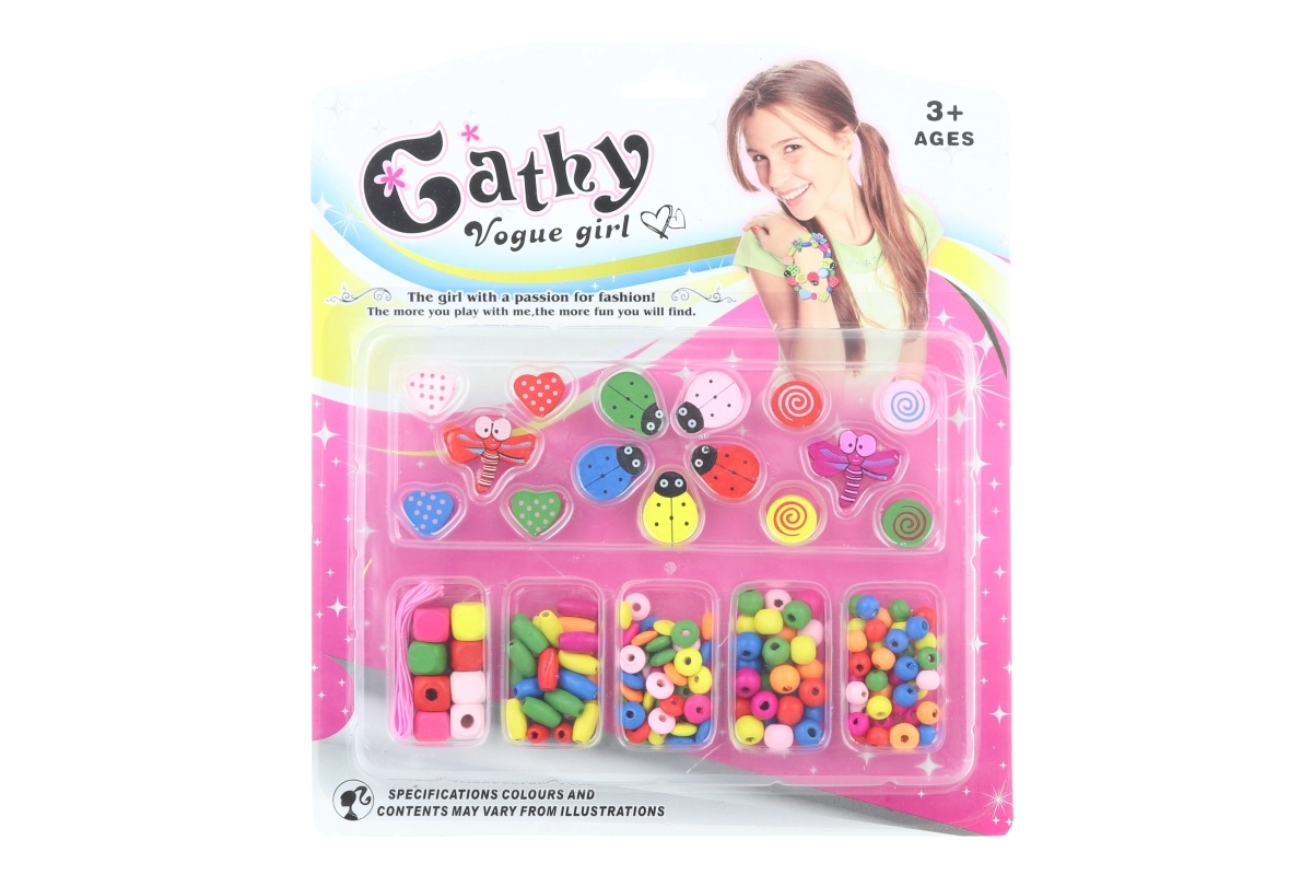 Oplev skabelsesglæden med et legende sæt træperler, ideelt til børns første kreative projekter. Takket være de forskellige former og farver kan børnene nemt lave deres egne armbånd og lære at kombinere farver og mønstre.