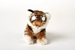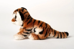 Plys brun tiger med en størrelse på ca. 25 x 19 x 11 cm (uden hale). Halelængde ca. 12 cm. Alder 0+