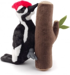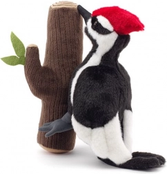 Denne plyssede spætte med karakteristisk rød tophue og kontrasterende sort-hvid fjerdragt er fastgjort til et blødt “træ” med blade og virker derfor meget realistisk. Takket være den bløde plyds er den ideel til kram, som pynt på børneværelset og til fantasifuld leg.