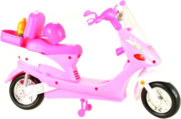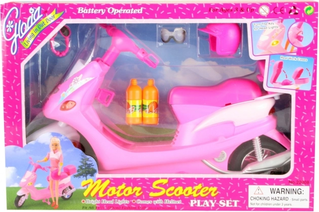 Forlygterne på scooteren tændes, når du drejer nøglen, hvilket giver en autentisk oplevelse. Gør dig klar til eventyr med dukkerne takket være den bageste bagagebærer med åbent låg til opbevaring af småting. Sættet inkluderer også stilfulde briller, en hjelm og to plastflasker, så dine dukker altid er klar til turen.