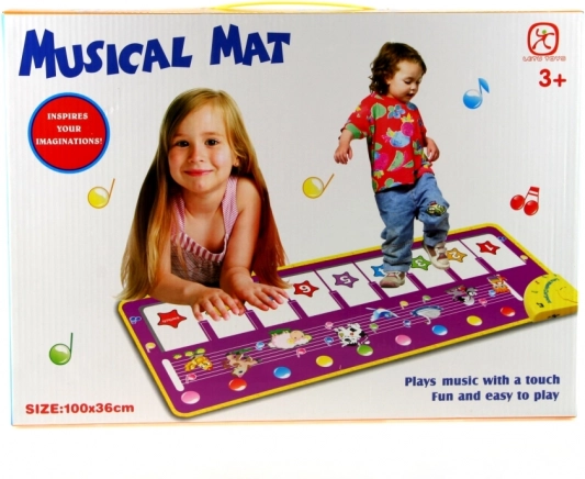 Interaktivt musik-tæppe til børn fra 3 år giver sjov udforskning af musik og dyrelyde. Rør ved eller træd på tangenterne, så afspiller tæppet klaverlyde og dyrelyde. Med målene 98 × 36 cm er der rigelig plads til leg og udvikling af motorik, rytme og hørelse. Drives af 3× AA-batterier (medfølger ikke).