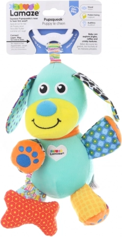 Opdag en verden af sjov med Lamaze-hvalpen, fremstillet af forskellige materialer for at stimulere følesansen. Dens klare farver og sort-hvide kontrastmønstre hjælper med at udvikle dit barns syn. Den afspiller gøen og prusten, når snuden trykkes, takket være det elektroniske lydsystem, som muliggør op til flere hundrede afspilninger.
