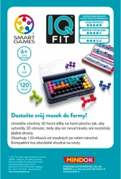 IQ Fit er et logikspil i flere sværhedsgrader, hvor du placerer farvede 3D-brikker på spillepladen, så de danner et perfekt 2D-mønster – intet må rage ud, og ingen åbning må stå tom. Hver opgave har kun én korrekt løsning, hvilket giver en fair udfordring og en klar følelse af succes.