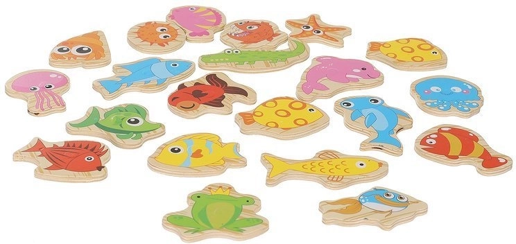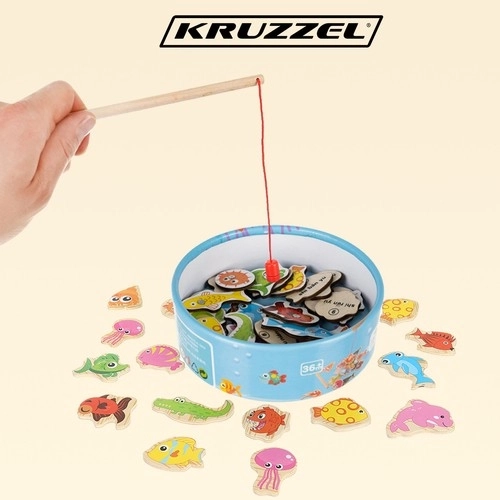 Dette træmagnetiske spil er et fremragende valg til hyggelig familieleg. Børn fanger søde havdyr med magnetiske fiskestænger, mens de træner øje-hånd-koordination, tålmodighed og præcision. Takket være de livlige farver og det venlige design vækker legen nysgerrighed og lærer børn om livet i vandet.
