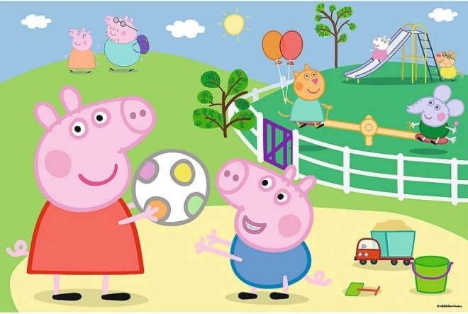Giv glæde til små fans af PEPPA PIG. Efter samling opstår en farverig scene fra legepladsen, som motiverer børn til at fortælle historier og træner tålmodighed. Takket være større og præcist udskårne brikker er puslespillet nemt at samle og perfekt som et af de første puslespil.
