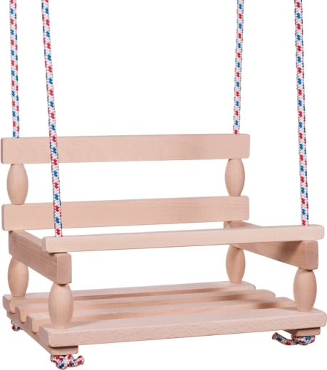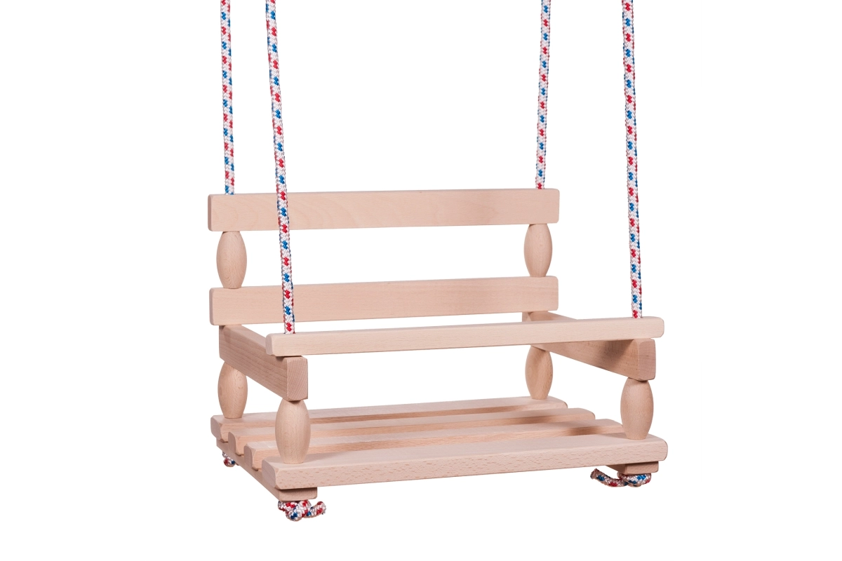Den holdbare trækonstruktion med glat overflade sikrer lang levetid og behagelig siddekomfort ved hver gyngetur.