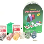 Dette alsidige pokersæt tilbyder kvalitetsudstyr opbevaret i en robust blikboks, som beskytter indholdet og gør det nemt at transportere. Takket være de kompakte mål passer det let i en rygsæk eller på en hylde og er ideelt til hurtigt at sætte et spil op når som helst og hvor som helst.