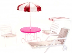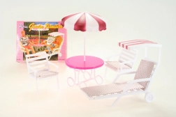 Saml det perfekte sommerhjørne til dine dukker med det elegante Glorie-sæt. Takket være de realistiske dele – liggestol, stole, lille bord og parasol – skaber du en skøn scene til afslapning og en hyggelig stund over “limonade”. Den robuste plastikudførelse sikrer nem vedligeholdelse og lang holdbarhed.