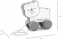 Oplev glæden ved klassisk legetøj med dette træ-trækdyr Isbjørn. Det er designet til nemt greb og træk, hvilket hjælper med at udvikle hånd-øje-koordination og finmotorik hos børn fra 18 måneder.