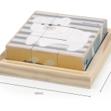 Med disse kvalitets træklodser kan du samle op til 6 søde dyremotiver. Ni solide massivtræsklodser er ideelle til børn fra 2 år og udvikler finmotorik, logisk tænkning og visuel perception. Sikker udførelse, behagelige pastelfarver og robust konstruktion til daglig leg.