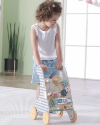 Vognen hjælper med at udvikle børns motoriske færdigheder takket være sin sikre konstruktion og interaktive komponenter.