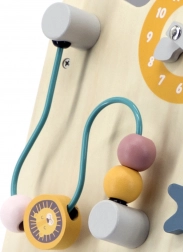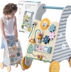 Træuddannelsesvogn fra Viga Legetøj er et fremragende værktøj til udvikling af motoriske og kognitive færdigheder hos børn fra 18 måneder. Det multifunktionelle design kombinerer en stabil vogn og et interaktivt læringspanel, der lærer børn at genkende former og farver. Roterende elementer som tandhjul, spor med dyr og sidepaneler holder børns opmærksomhed og underholdning.