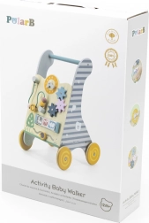 Uddannelsesvogn til børn fra mærket Viga Legetøj, anbefalet til børn fra 18 måneder, tilbyder en kombination af bevægelse og læringsaktiviteter takket være panelet med former og farver.