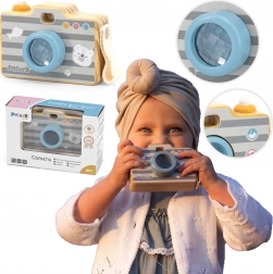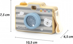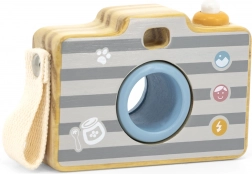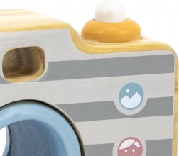 Legetøjet er fremstillet af træ af høj kvalitet og forsynet med ikke-giftige, børnesikre farver. Robust udførelse, glatte kanter og et sidehåndtag sikrer komfortabel og sikker brug. Fotoapparatet styrker finmotorik, koordination og kreativitet under rollespil.