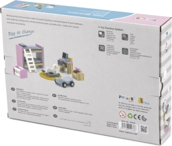 Sættet kan udvides med flere rum fra POLARB-serien (soveværelse, stue, køkken, badeværelse) og dermed skabe et helt dukkehus præcis som ønsket. Takket være materialer af høj kvalitet og ikke-giftige farver er legen sikker og understøtter samtidig finmotorik, kommunikation og logisk tænkning.