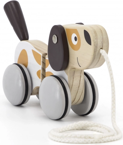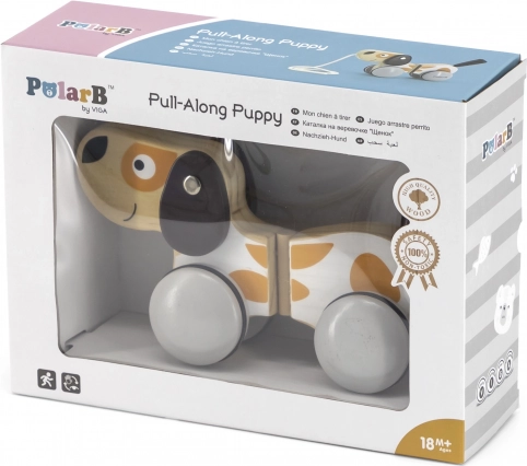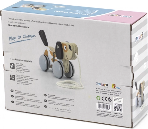 Træhunden med snor fra VIGA POLARB-kollektionen ledsager børn på deres første gåture og gør hvert skridt til en leg. Takket være gummiovertræk på hjulene er kørslen stille og jævn, og når barnet trækker, vifter halen glad.
