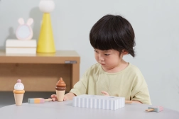 Sættet er et fantastisk supplement til børnenes legekøkken eller til leg med butik. Det udvikler finmotorik, koordinationsfærdigheder, ordforråd og social interaktion i den fælles leg. Takket være den robuste udførelse tåler det daglig brug og pynter samtidig flot i indretningen.
