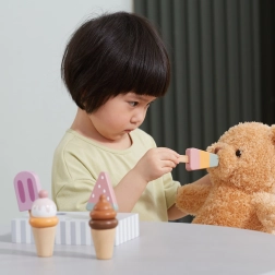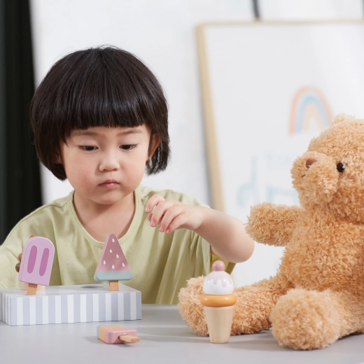 De fem forskellige ispinde inspirerer børn til rollelege, udvider ordforrådet og styrker sociale færdigheder gennem fælles leg.