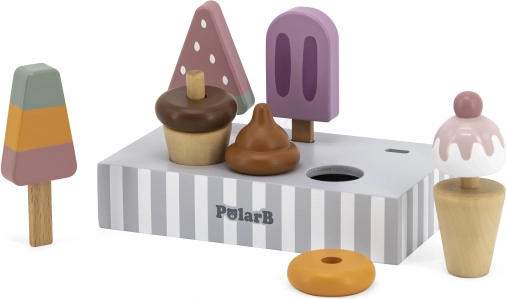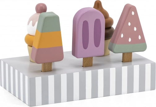 Sæt med 5 træispinde i indbydende farver, der giver børn uendelig meget sjov. Ispindene står på en stabil træstander, som er velegnet både til udstilling og overskuelig opbevaring. Alt er lavet af kvalitetstræ og malet med sikre, giftfri farver.