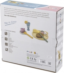 Takket være robust træ og kvalitetsforarbejdning er sættet modstandsdygtigt til daglig leg. Velegnet til legekøkken, legerum og på farten. Leg med mad understøtter farver, former og grundlæggende regler for bordskik.
