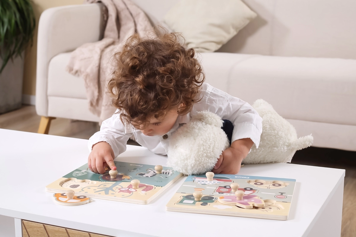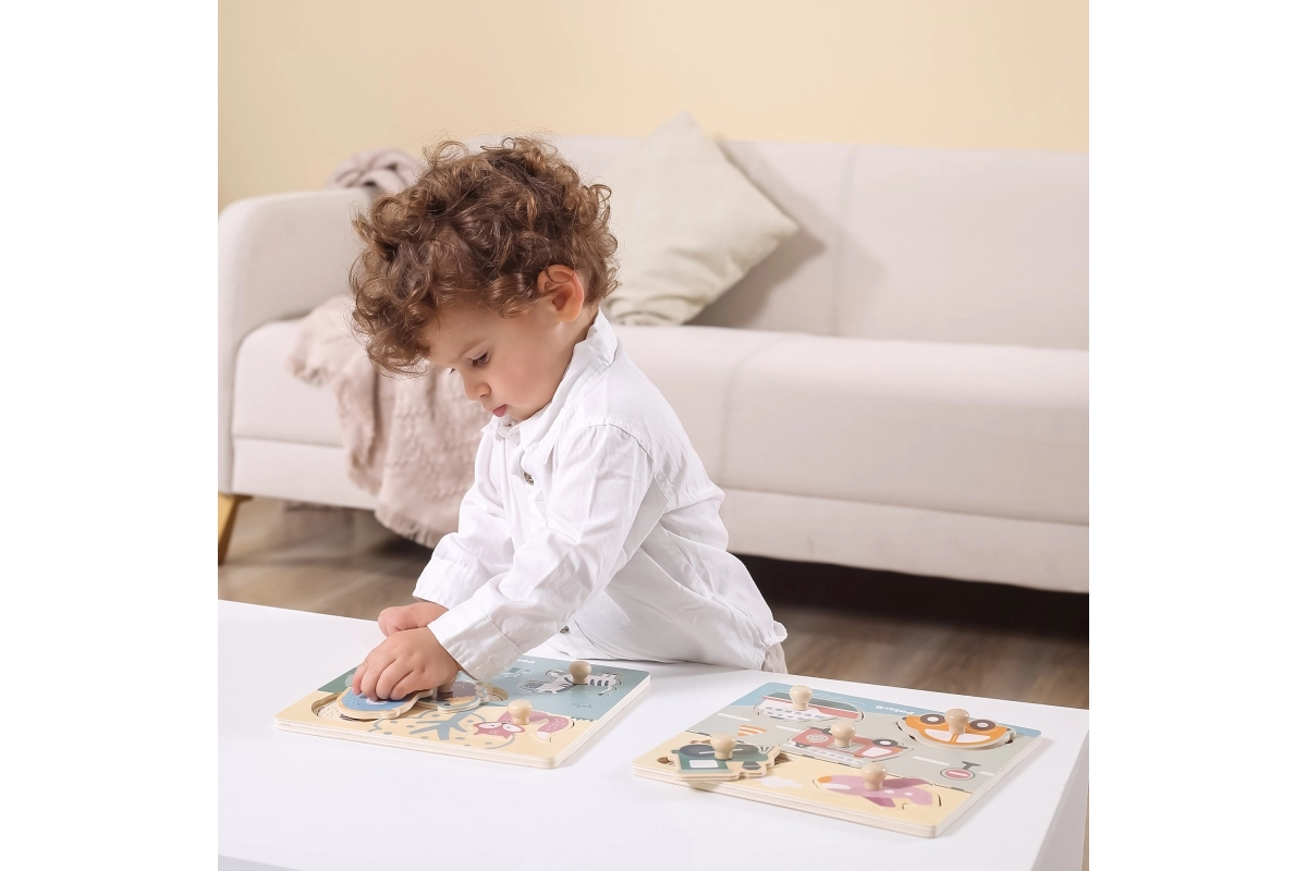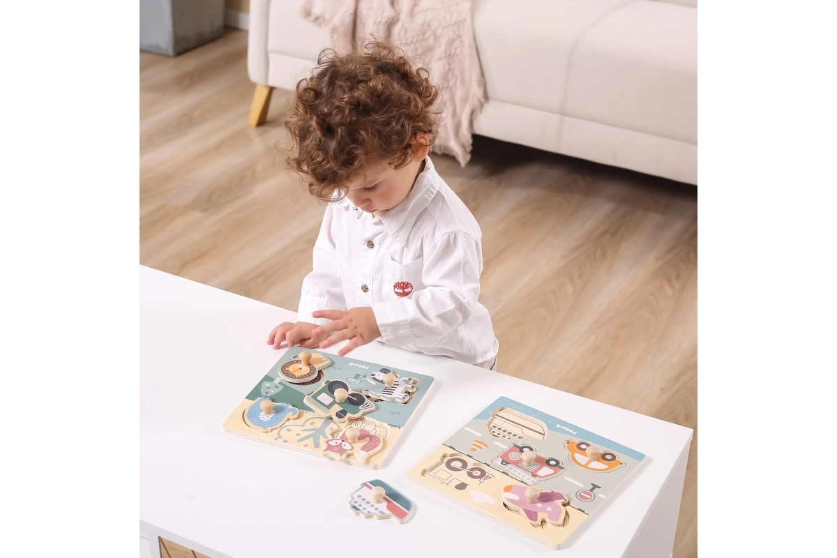 Træpuslespil med indlæg - transportmidler