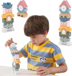 Børnene stabler tårnet, så det ikke vælter – en sjov måde at lære koordination og logik på.