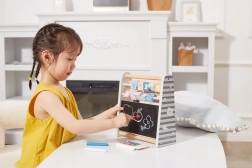 Inkluderer en lille tavle og støvfrit kridt til at skrive tal, de første regnestykker og egne tegninger – ideel til at udvikle kreativitet.