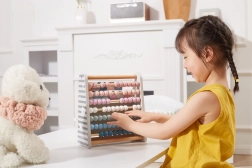 Farvede perler og vendbare klodser med tal motiverer børn til at udforske matematikkens grundprincipper på en naturlig og sjov måde.