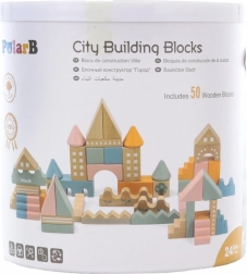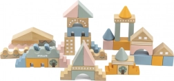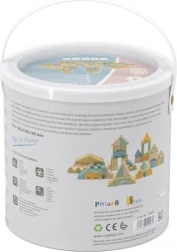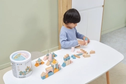 Dette kvalitetsbyggesæt i træ leveres i en spand og indeholder 50 omhyggeligt forarbejdede dele i behagelige pastelfarver. Børn kan bygge små huse, tårne og hele byer, mens de samtidig udvikler koordination, logisk tænkning og kreativitet.